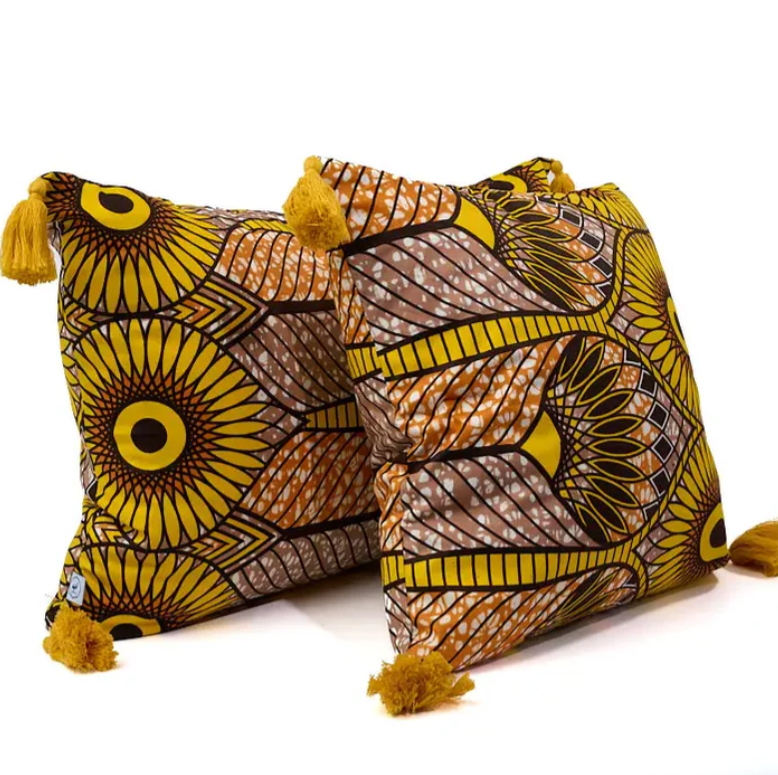 Créez un véritable impact visuel avec ces coussins en wax, aux graphismes et couleurs puissants. Osez les combinaisons audacieuses qui apporteront une ambiance unique à votre intérieur.