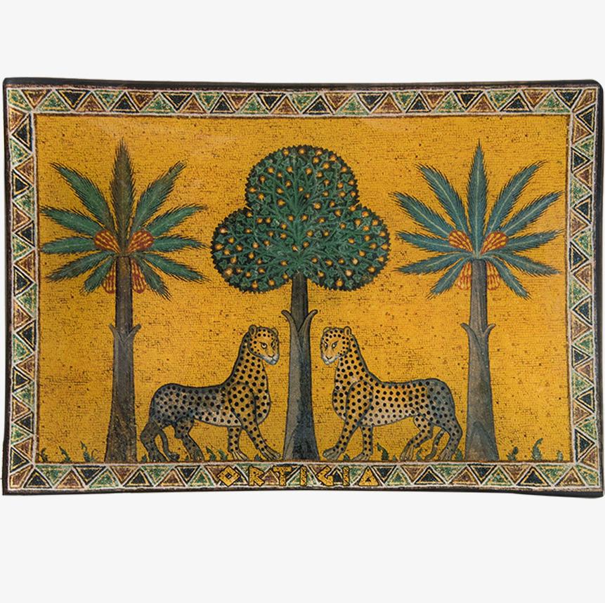 Magnifique plateau rectangulaire, en verre. Entièrement fait main et sérigraphié.