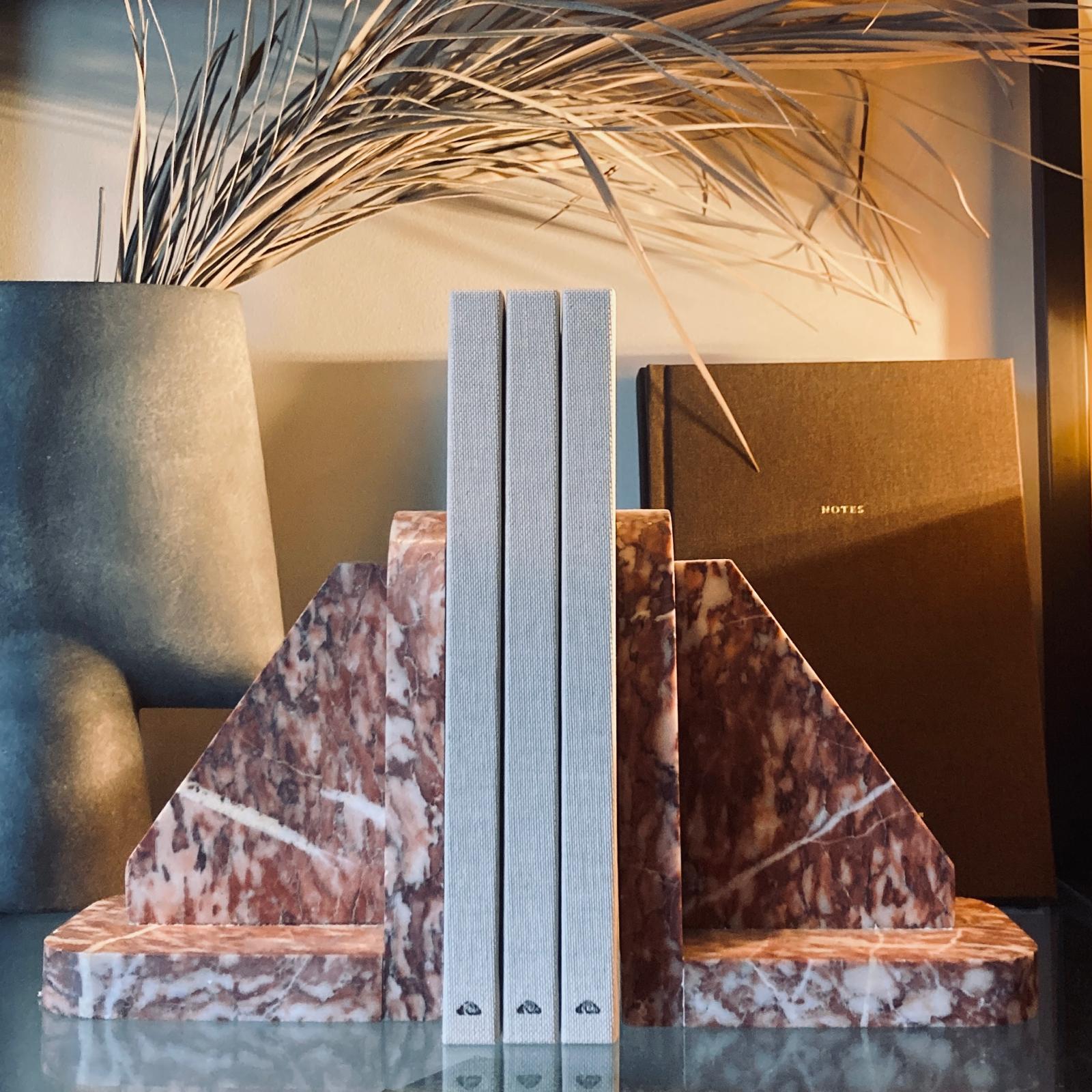Ajoutez du charisme à votre bibliothèque, avec ce serre-livre en marbre rose.